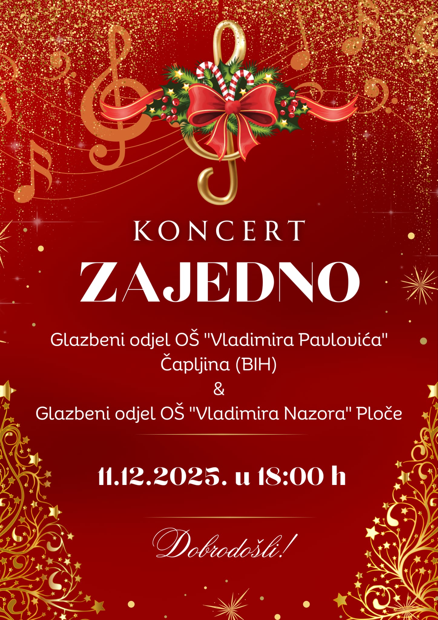 Stiglo nam je čarobno vrijeme Božića, a već nam je tradicija uljepšati ga pjesmom. Ove godine Glazbeni odjel OŠ "Vladimir Nazor" je udružio snage s Glazbenim odjelom OŠ Vladimira Pavlovića iz Čapljine.