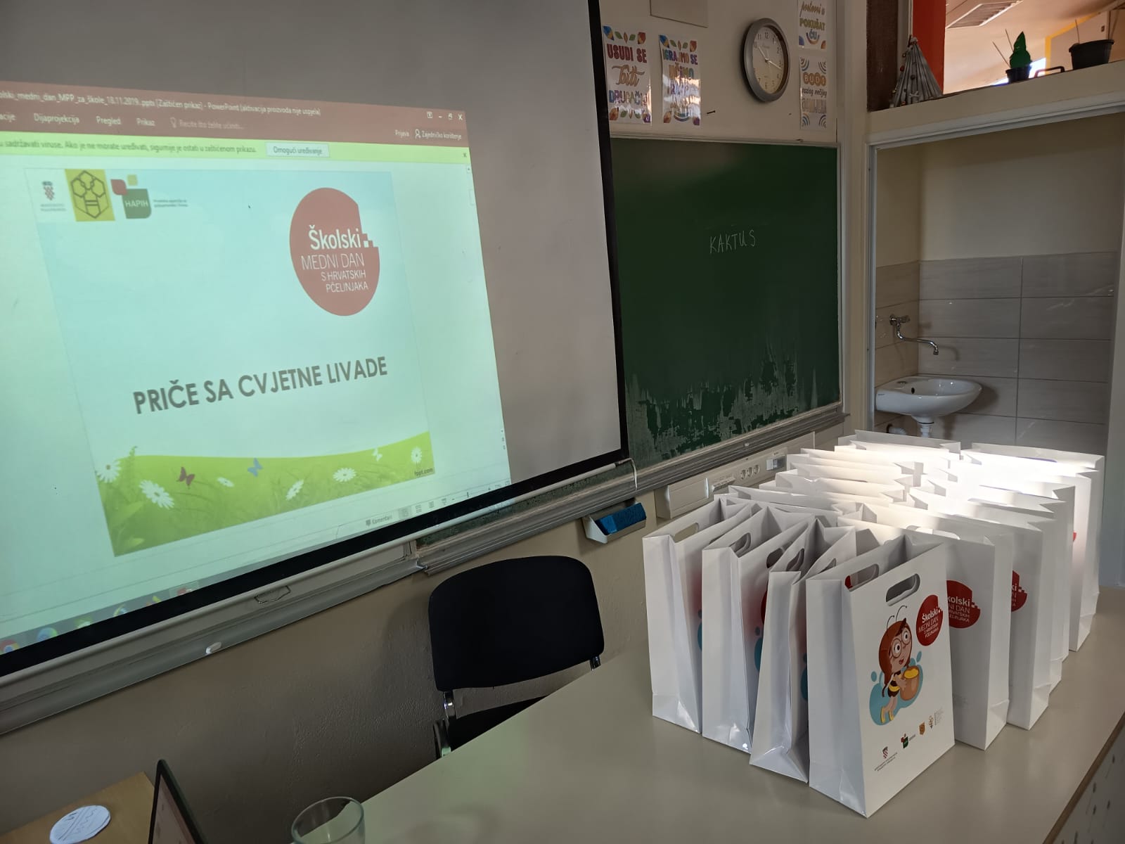 Učenicima prvih razreda osnovnih škola su  podijeljeni različiti priručni i edukativni materijali opće vidljivosti sa znakom Školski medni dan s hrvatskih pčelinjaka uključujući i slikovnicu edukativnog karaktera o pčelarstvu prilagođenu njihovoj dobi.