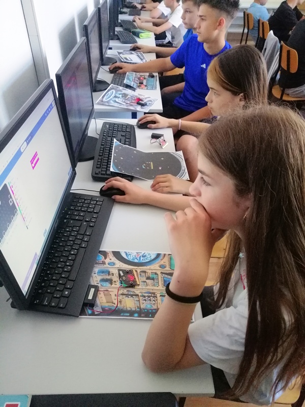 Učenici su se upoznali s osnovnim funkcijama micro:bita i razvijali digitalne kompetencije kroz praktične i zanimljive izazove. Prikupljali su bodove rješavanjem zagonetki tako što su otkrivali kodirane poruke programirajući mikroračunala unutar vremenskog ograničenja od 60 minuta.