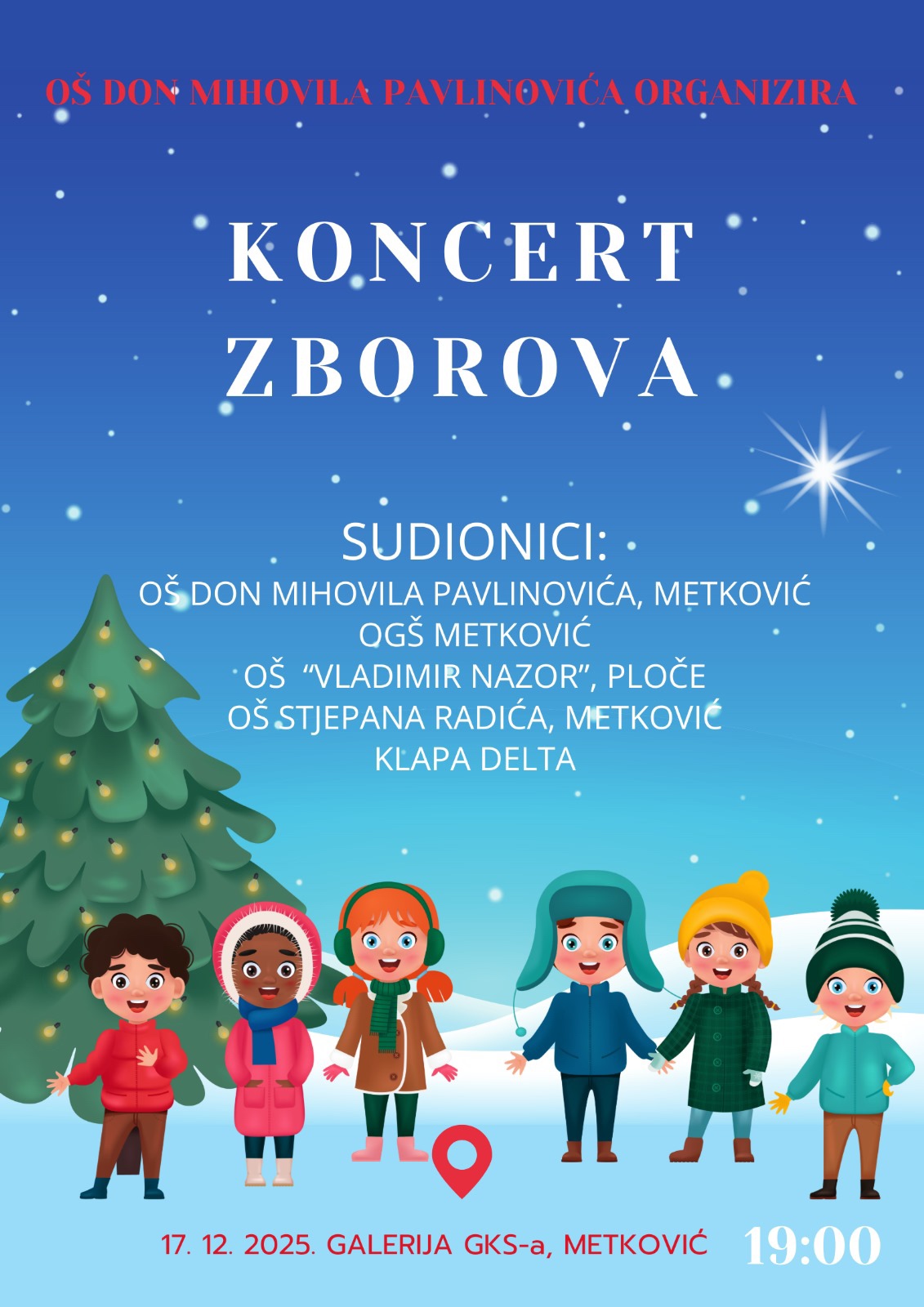 U srijedu, 17. prosinca 2025. godine u Gradskom kulturnom središtu u Metkoviću održan je tradicionalni božićni koncert dječjih zborova na kojem su nastupili učenici naše škole, kao i učenici OŠ don Mihovila Pavlinovića Metković, OŠ Stjepana Radića Metković, Osnovne glazbene škole Metković te klapa Delta.