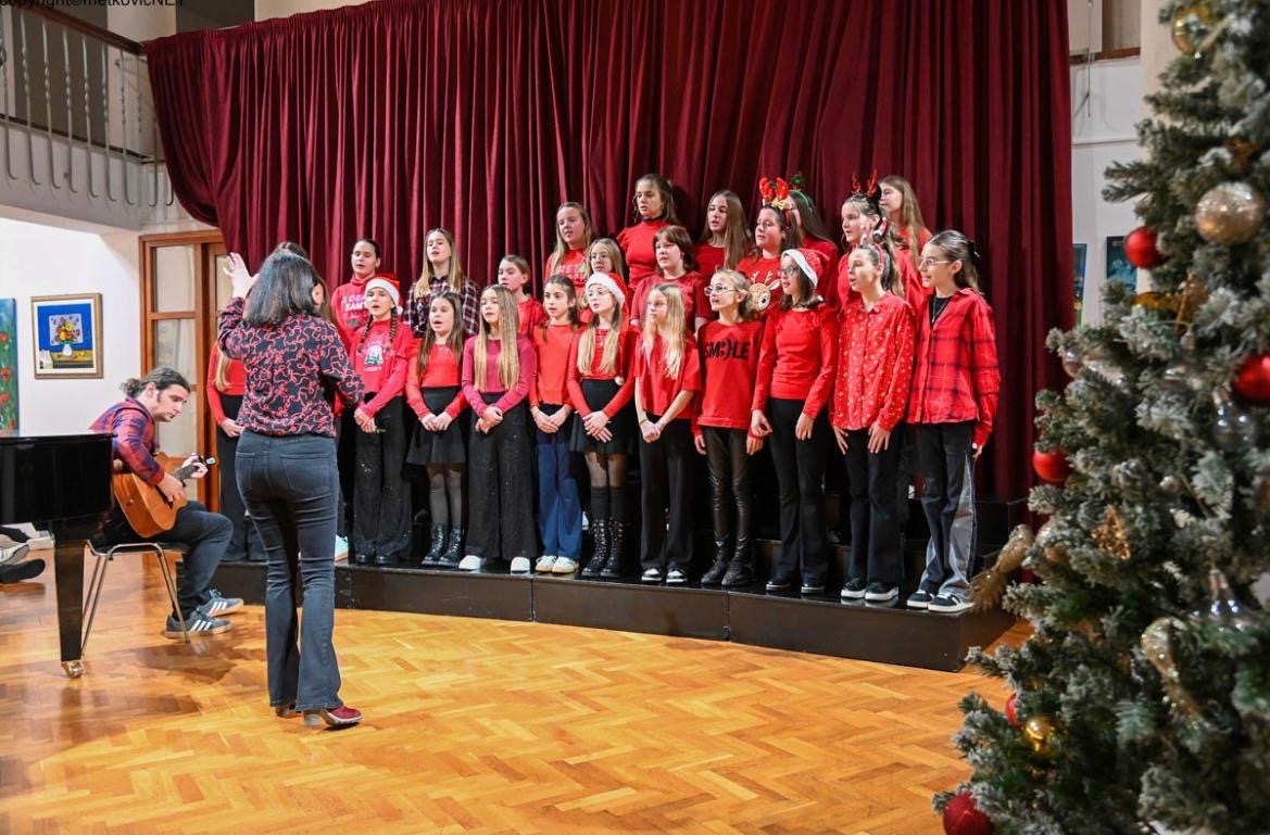 Veliki školski pjevački zbor otpjevao je dvije zahtjevne pjesme dvoglasno i troglasno, Snowman i Sleigh ride. U drugoj pjesmi kazoo su svirale Klara Jakić i Antonia Šendo, a na praporcima je vješto držala ritam Paula Šunjić. Na sve tri pjesme gitarsku pratnju svirao je Silvestar Ćavar.