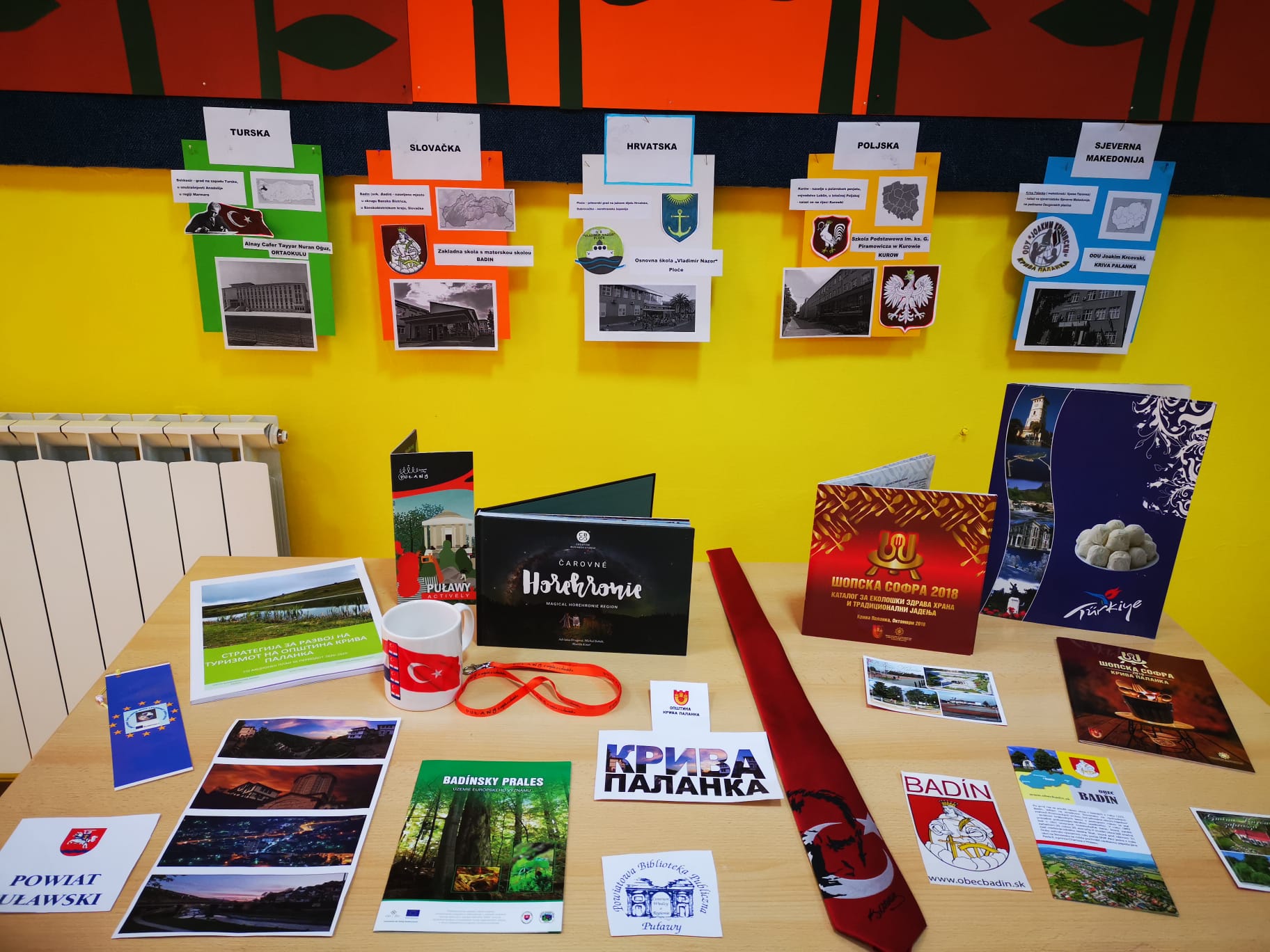Cilj ovog kutka je predstaviti zemlje partnere, osobitosti njihovih škola, grada i kulturne znamenitosti. Izloženi su prigodni informativni materijali doneseni s održane mobilnosti kao i radovi učenika s dosad provedenih aktivnosti.