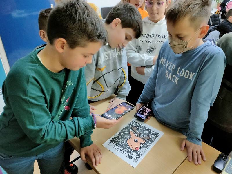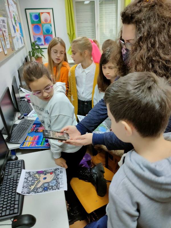 Učenici četvrtih razreda bojali su božićne i novogodišnje motive koje su potom mobitelom skenirali pomoću posebne aplikacije i na taj način vidjeli svoje radove kako izgledaju „kada ožive“ kroz ekran.
