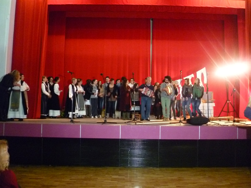 Naša profesorica talijanskoga jezika, Gordana Šutalo, talijanskim prijevodom je popratila recitacije Tonija Krilića Skuše. Prigodna večer završila je pjesmom „… dvi ribe, dva krumpira“, koju su domaćini i naši gosti s veseljem pjevušili. Sam kraj „začinili“ su Pepe i Cinzia pjesmom uz pratnju instrumenata, što je oduševilo i izmamilo osmijehe prisutnima.