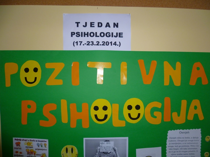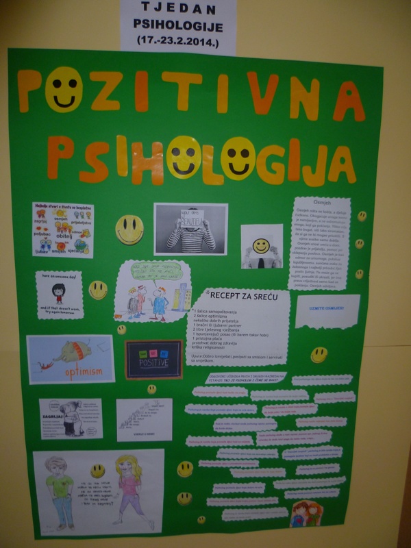 Učenici, Tea, Ana i Nataša pripremili su plakat „Pozitivna psihologija“ koji je izložen u hodniku Škole.