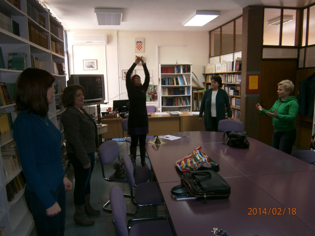 U našoj Školi 18.2.2014. u 12 sati održana je radionica: „Tehnike savladavanja stresa“. Radionicu je vodila psihologinja Nataša Palac a učestvovalo je 15 učitelja. Uz vježbe koncentracije, mišićne relaksacije, dubokog disanja i vođene fantazije bilo je i puno smijeha.