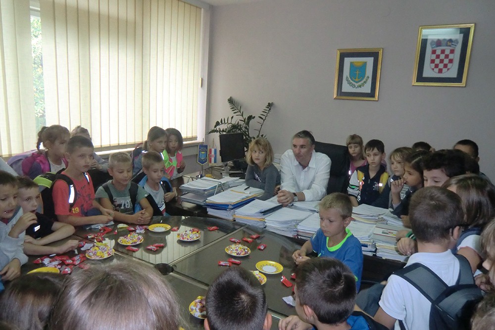 Dana 3.listopada 2014.uzbuđeni učenici druhih razreda sa svojim učiteljicama Višnjom i Ivankom uputili su se u urede lokalne zajednice. Srdačno i toplo dočekali su ih domaćini gradonačelnik Krešimir Vejić i Lora Lovrić. U opuštenoj atmosferi i uz slatke bombončiće