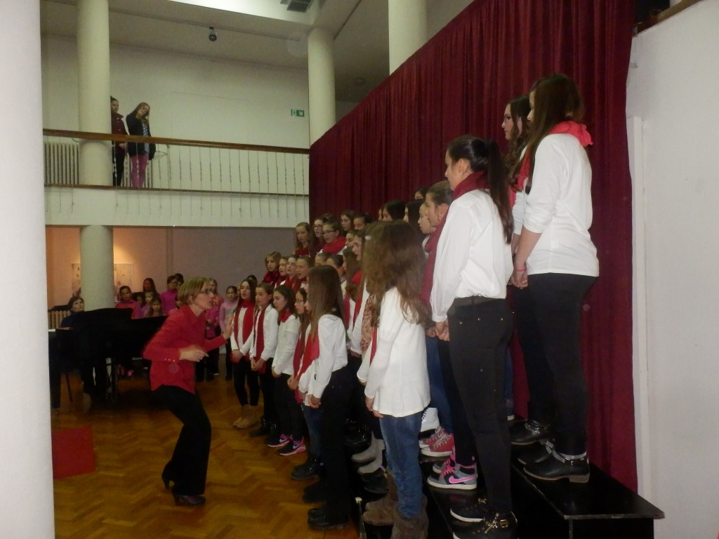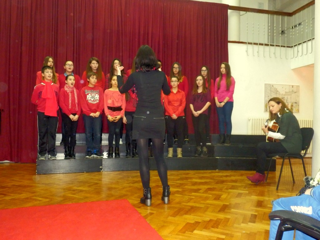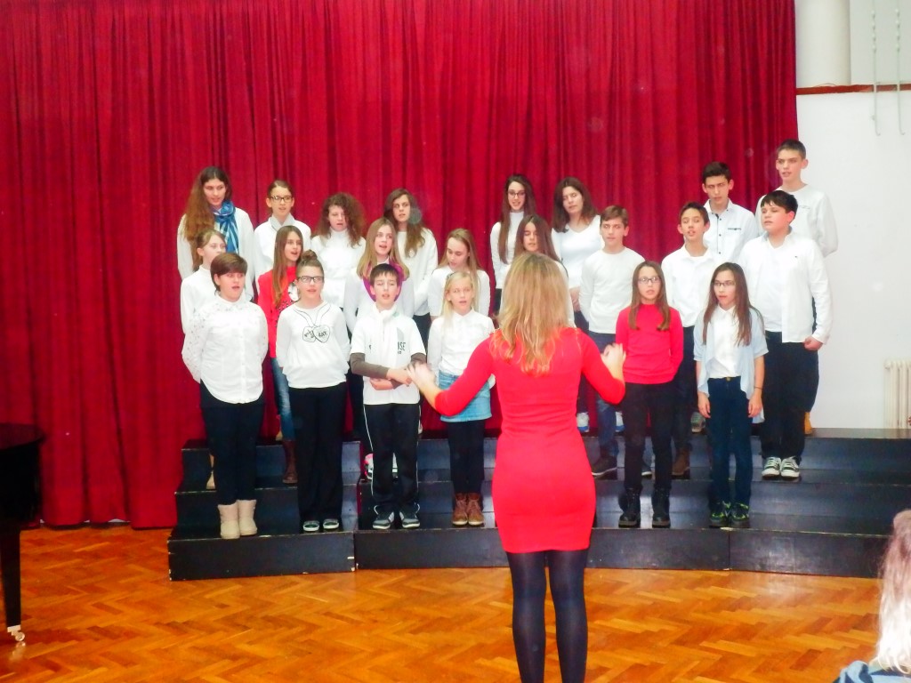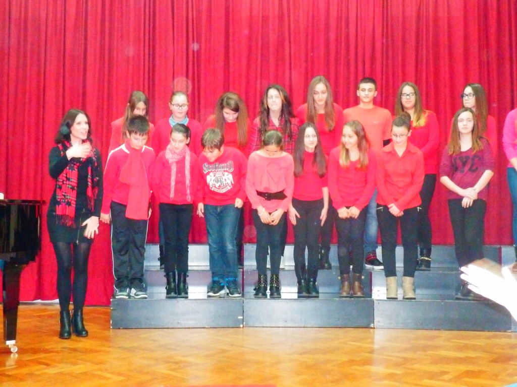 Naš zbor otpjevao je troglasno tradicionalnu pjesmu Tiha noć na hrvatskom, engleskom i talijanskom jeziku uz gitarsku pratnju naše učiteljice Ivane Pudar Pećar, a zbor glazbenog odjela je otpjevao Adeste fideles i White Christmas uz klavirsku pratnju učiteljice Jasne Krilić. Na samom kraju koncerta, svi sudionici kao i publika otpjevali su zajedno pjesmu " O, pastiri ".