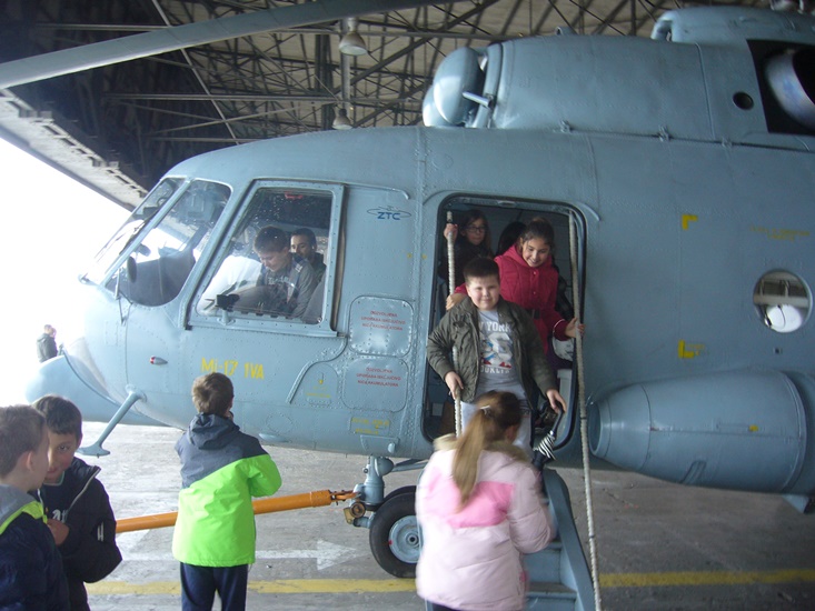 Nakon vrlo uspješnog i zanimljivog predavanja produžili smo u helihoptersku bazu i tu je uslijedio vrhunac oduševljenja.Dočekali su nas piloti helihoptera koji su nam omogućili obilazak i detaljno razgledavanje helikoptera koji pomažu u spašavanju ljudskih života u različitim prilikama.Skoro svi učenici iskoristili su i mogućnost ulaska u pilotske kabine i upoznavanja sa načinom upravljanja.
