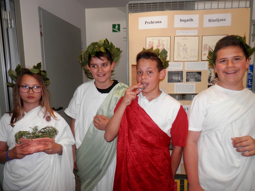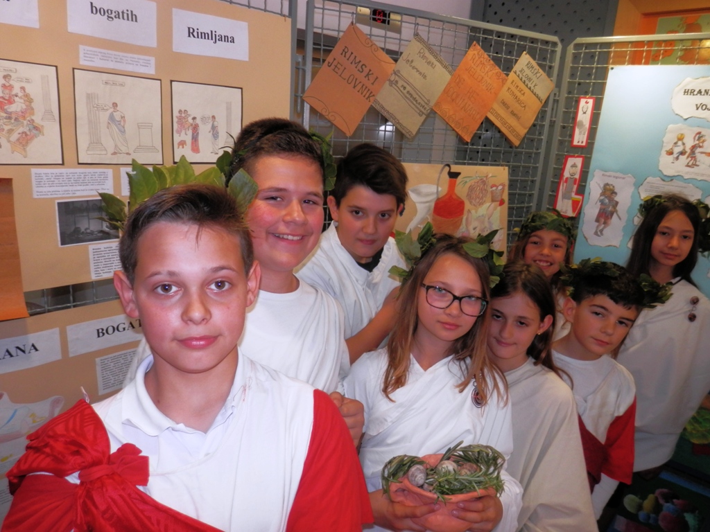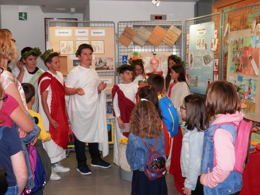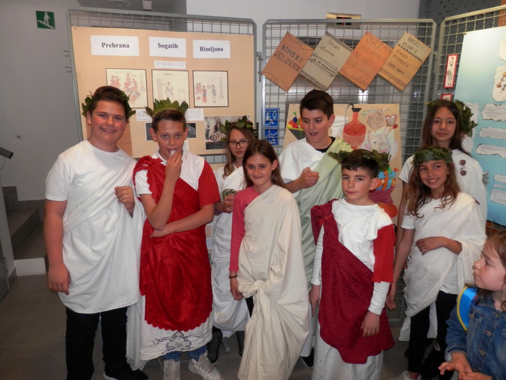 Osim naše škole, sudjelovale su osnovne škole iz Metkovića, Opuzena i Komina te brojni dječji vrtići. Mi smo bili zaduženi za prehranu bogatih Rimljana. Učenici Likovne grupe koji su sudjelovali u projektu su: Ena Gradac, Leontina Jakovljević,Lucija Markota, Lana Dominiković, Petra Glaviškić, Doris Žderić, Marko Albanezi, Mihael i David Butigan. Učenici iz povijesne grupe su: Roko Pavlović, Ivan Vrankić, Frane Rohač, Mia Šunjić, Luna Antunović, Gabrijela Milošević, Gabrijela Mara Glaviškić, Mia Krešić i Dario Kandić. Učenik 5.a Roko Pavlović prezentirao je radove i istraživanja naših učenika. Kroz radionice učenici su istražili prehrambene navike starih Rimljana. Pritom su izradili jelovnike, pozivnice za gozbe, plakate, stripove, crteže, replike posuđa i odjeće bogatih Rimljana. Učenici su razgledali i stalni postav muzeja pod vodstvom ravnatelja Tonija Glučine. Ovim putem zahvaljujemo mamama i bakama na posudbi bijelih plahti za dočaravanje rimske odjeće.