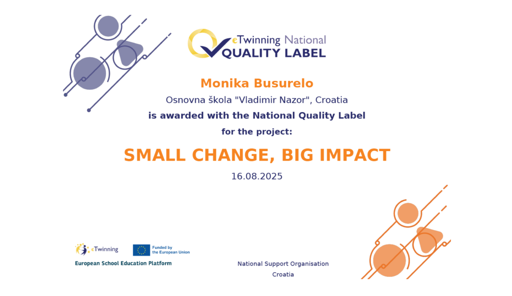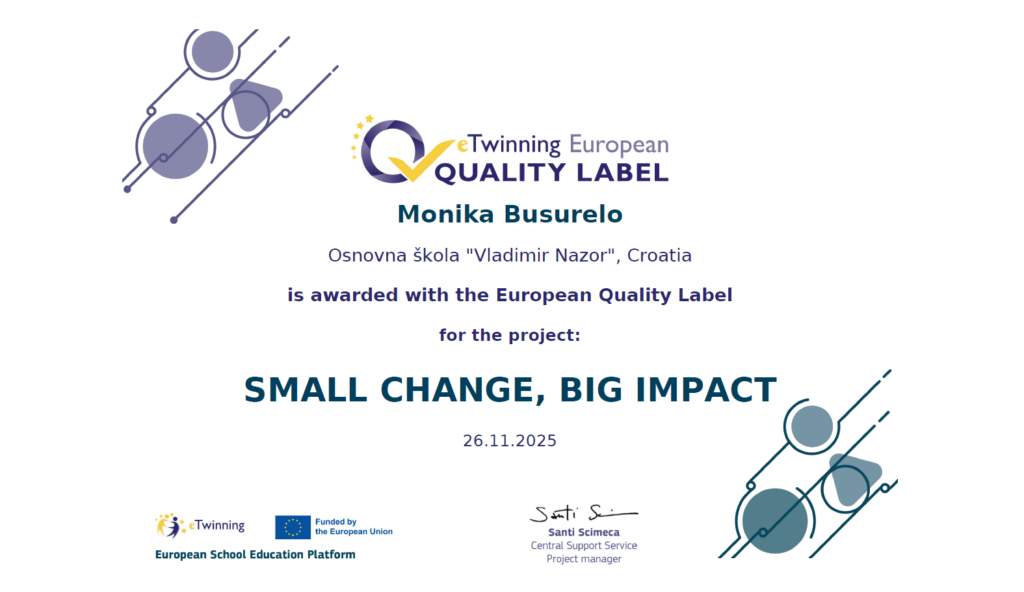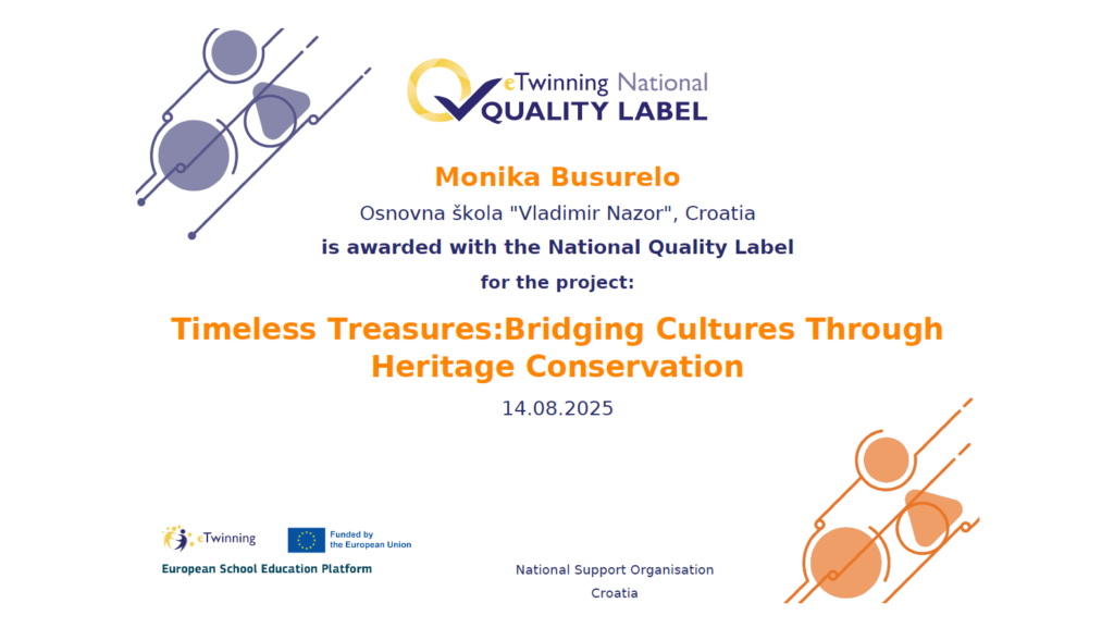 Europska oznaka kvalitete za eTwinning projekte Small Change, Big Impact i Timeless Treasure: Bridging Cultures Through Heritage Conversation